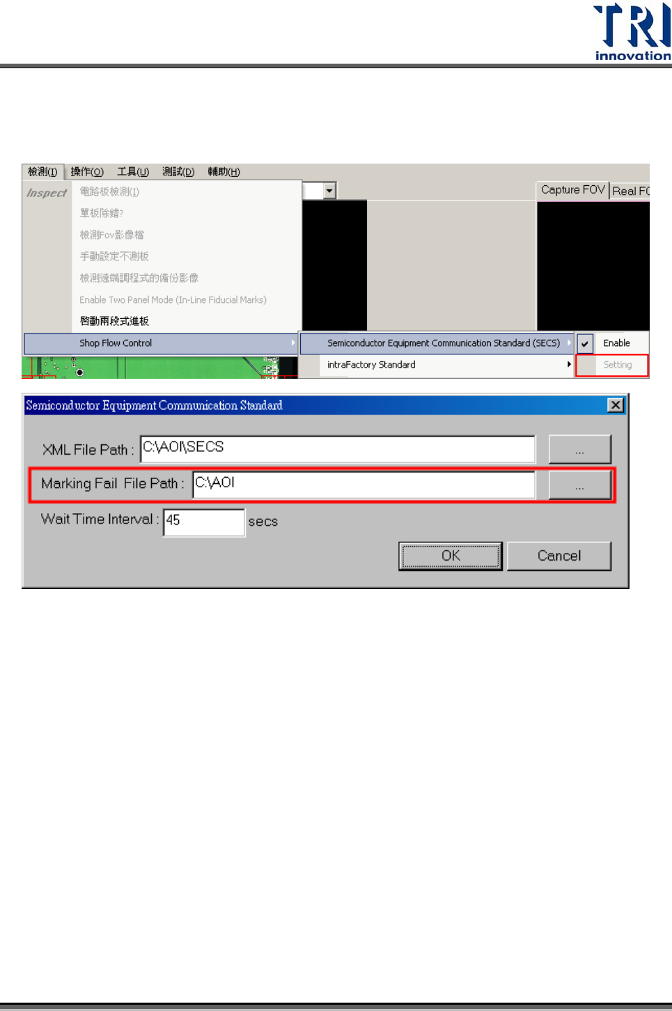 Communication Standard (SECS)/ Setting]。在[Marking Fail File Path]欄位