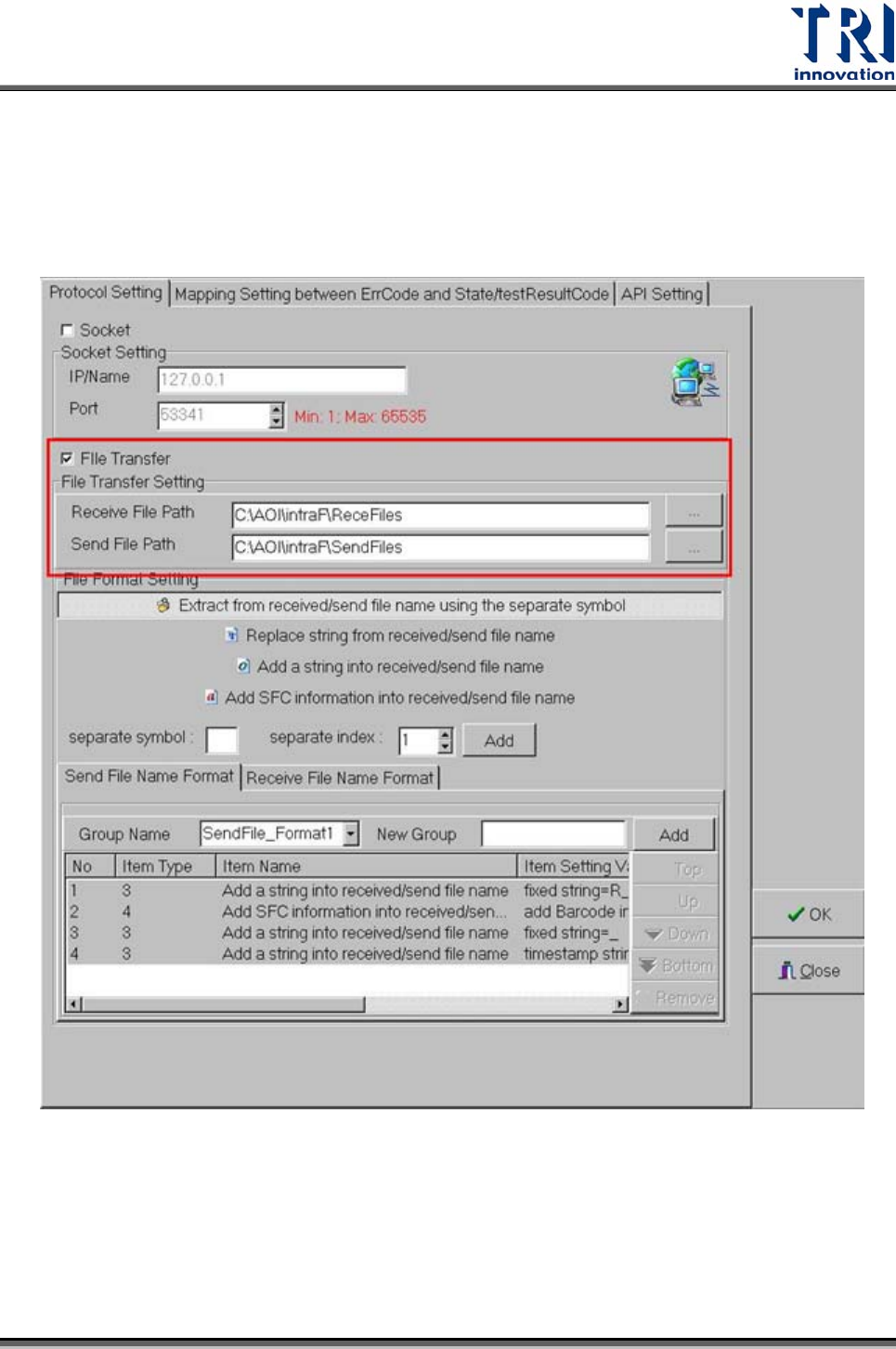 來的檔案所存放的資料夾。[Send File Path]是指 AOI 機台送給客戶端