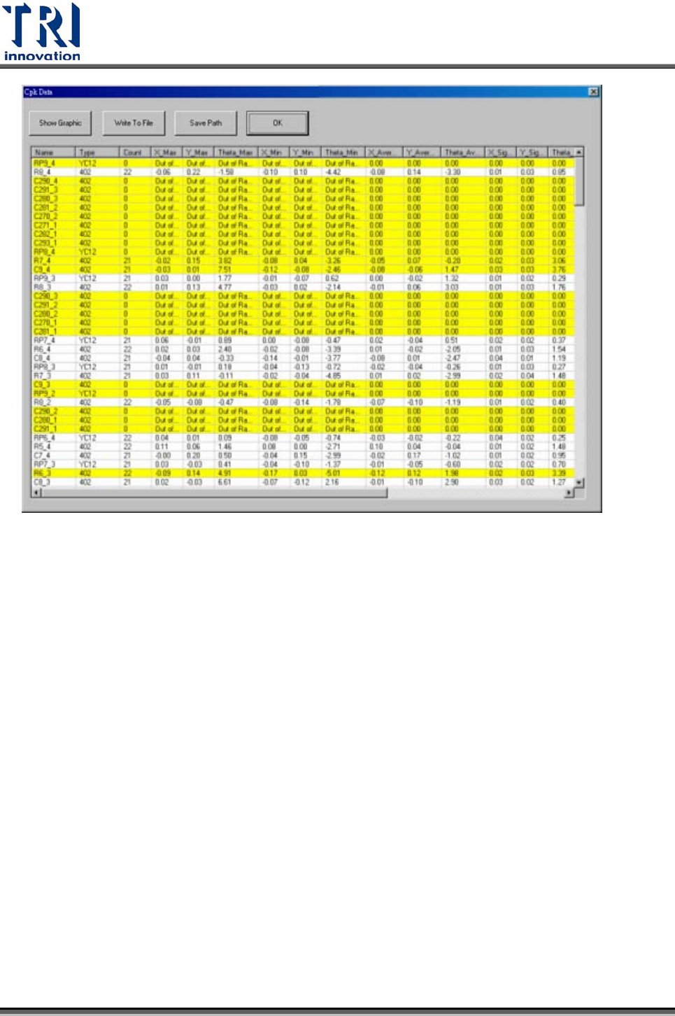Test Research Inc. TR7500SeriesUserGuide – Software 199 3.7.10.2 Cpk 資料報告 (Cpk Data Report) 有勾選 [Cpk 資料收集 ] ,此按鈕才會作用。按下次按鈕可以檢視先前收集的 [Cpk 資料 報告 ] 。 此欄位變 成可 以點選 Cpk 資料報告格式