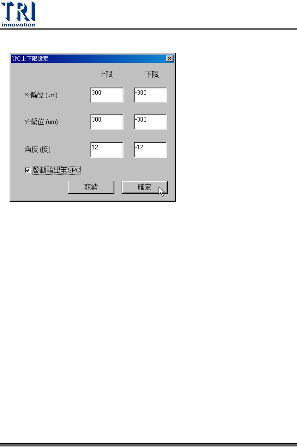 資料輸出至 SPC統計。在此須先設定各輸出結果的上下規格界線,會一併傳至維