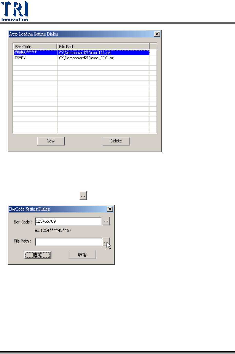 窗,在此時輸入的條碼若有符合之前的設定,則會自動開啟相對應的程式,