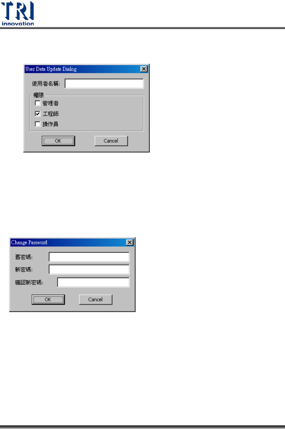 z 工程師(Engineer) – 能夠使用程式中除[使用者管理]外所有功能者。