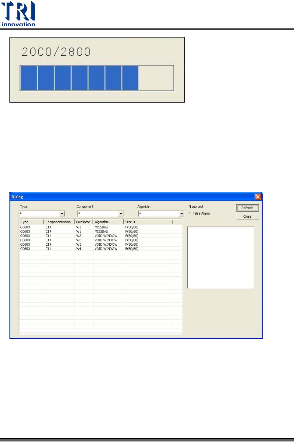 前儲存的影像資料為準進行檢測。程式在運行過程中會彈出如下的對話框,