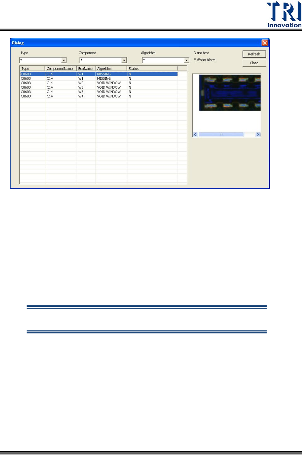 下圖,點選有問題的元件後,可以在右邊看到該不良的影像,並且可以在上面的選