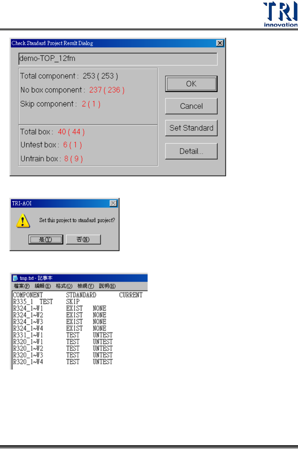 按下[Set Standard]可將目前專案設成標準專案。