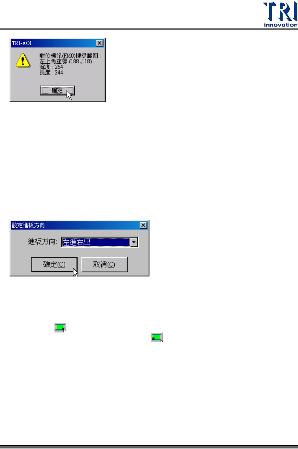 Test Research Inc. 294 TR7500SeriesUserGuide – Software 4.4.1.5 電路板 (1) 尺寸 (Board 1 Size) 按下此功能可以進入 [ 設定電路板 (1) 尺寸 ] 視窗,步驟請參閱 2.4.4 。 4.4.1.6 標準 FM(Standard FM) 學習標準對位標記影像功能。先調整控制框的大小及位置至標準物件上後,執行本功 能,則影像會被儲存為標準對位標記…