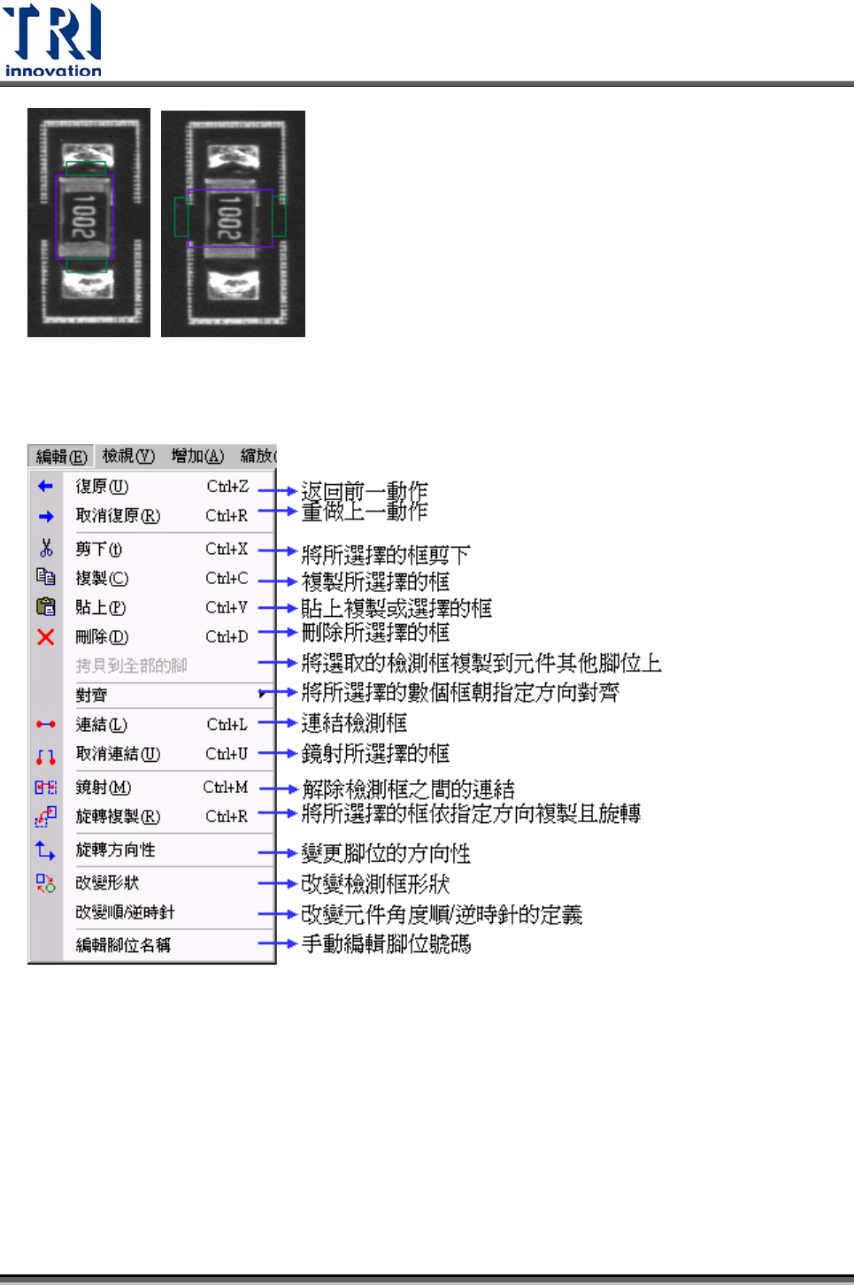 將檢測框旋轉,按[旋轉]按鈕一次,表示將此元件所有的檢測框向逆時針旋轉 90 度。