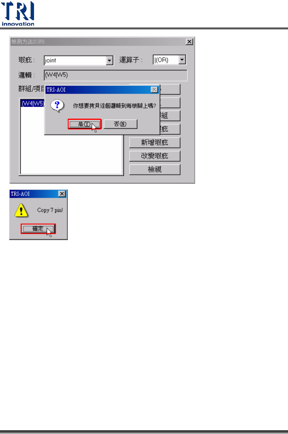 z 若設定邏輯的檢測框是位於 IC 腳上的檢測框,則系統會詢問是否要將邏輯複製