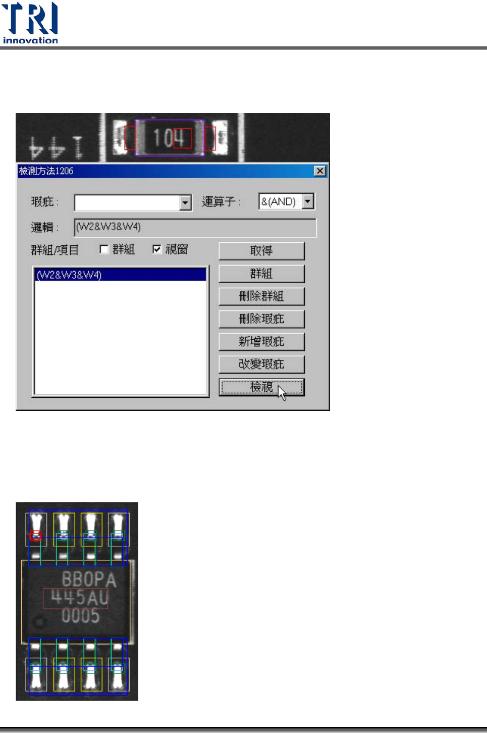 檢視(View) – 按下[檢視]按鈕可以把[邏輯]完字方塊中有關的檢測框在圖上用紅色顯