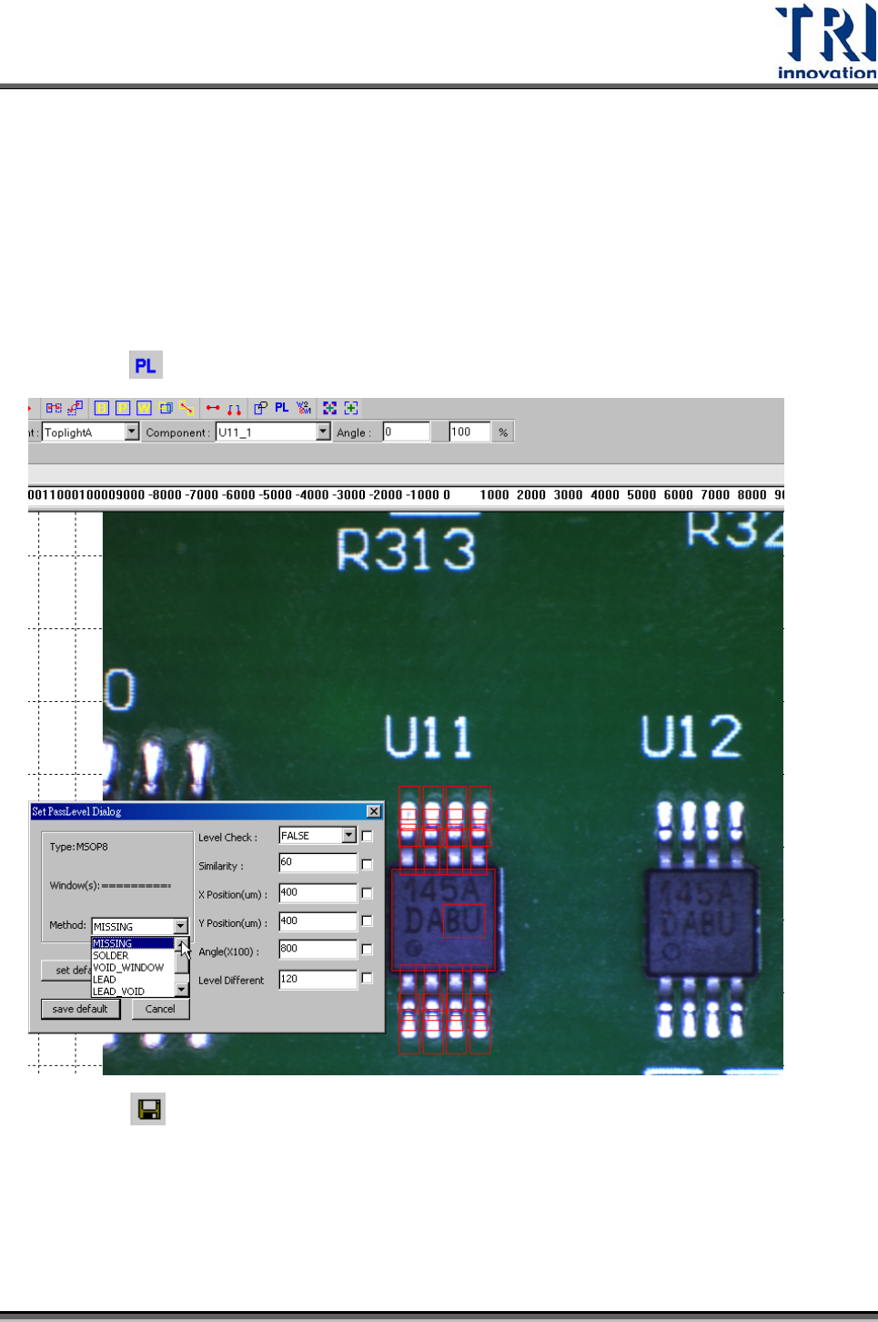 9) 按下[ Pass Level]來設定所有檢測框的比對條件。