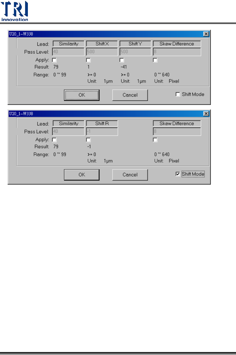 Shift X – 待測元件之 X 方向位移的容許程度
