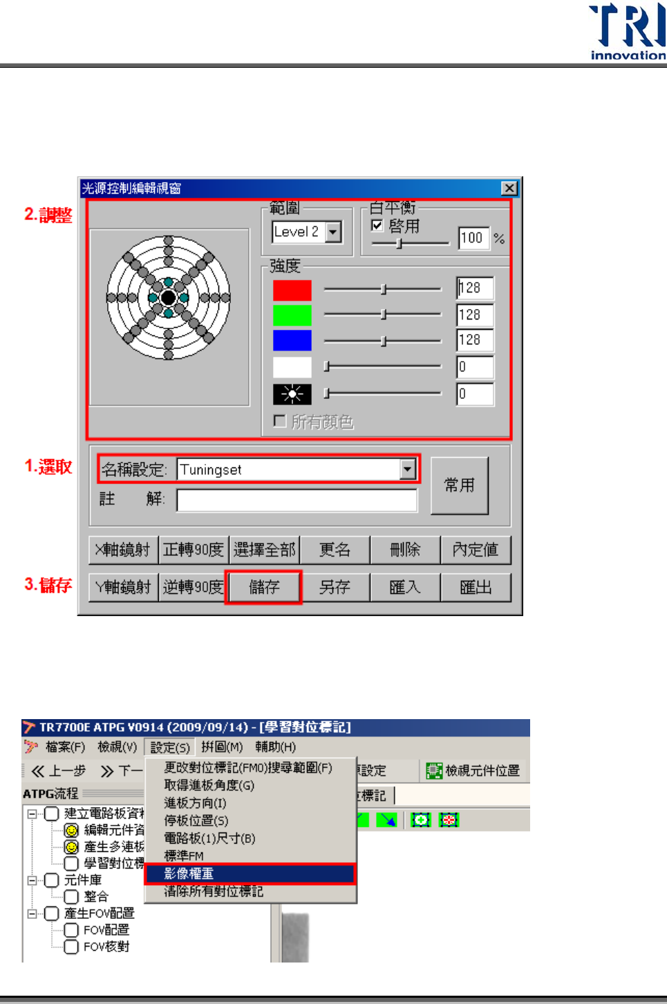 整,直到合適定位標記點後,按下[儲存]按鈕,燈光即設定完成。