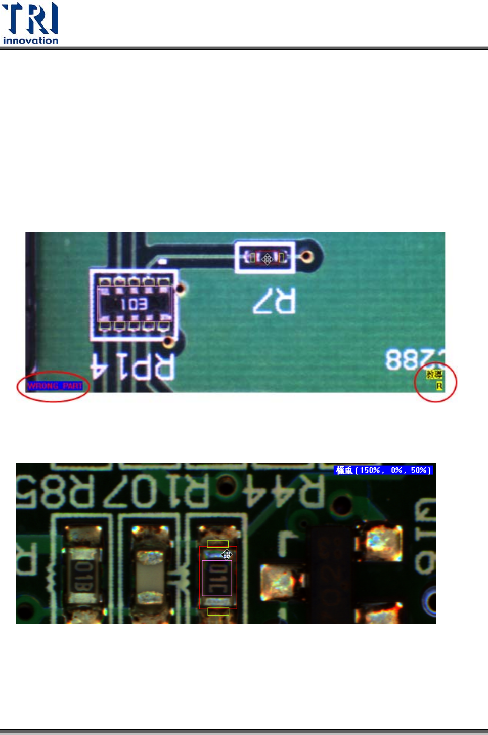 在本區域影像之右上角會顯示出當時所點選檢測框所設定的[權重(Weighting)]。