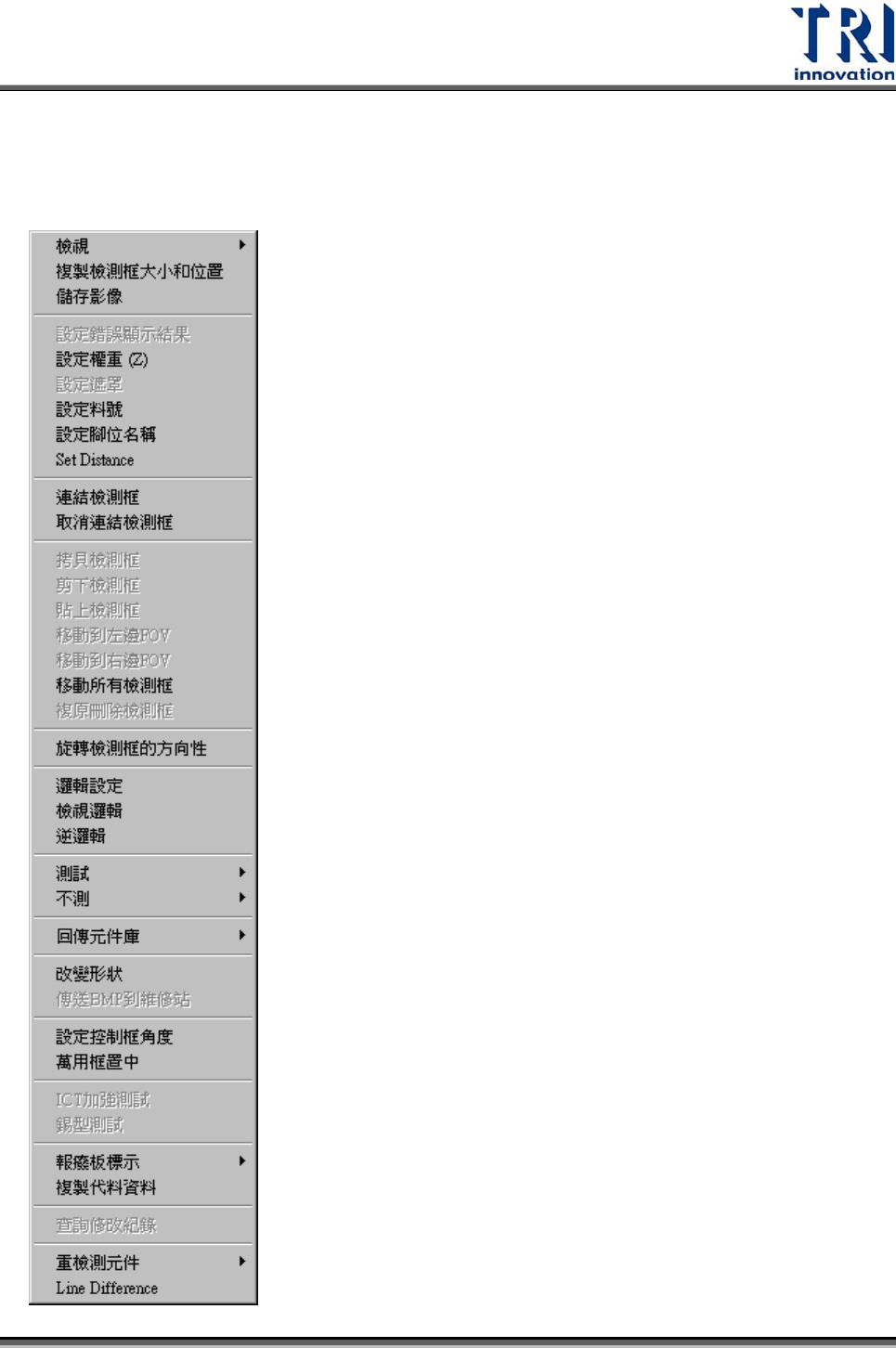 Test Research Inc. TR7500SeriesUserGuide – Software 433 5.5.1 功能表 在此區域內按下滑鼠右鍵會出現功能列表