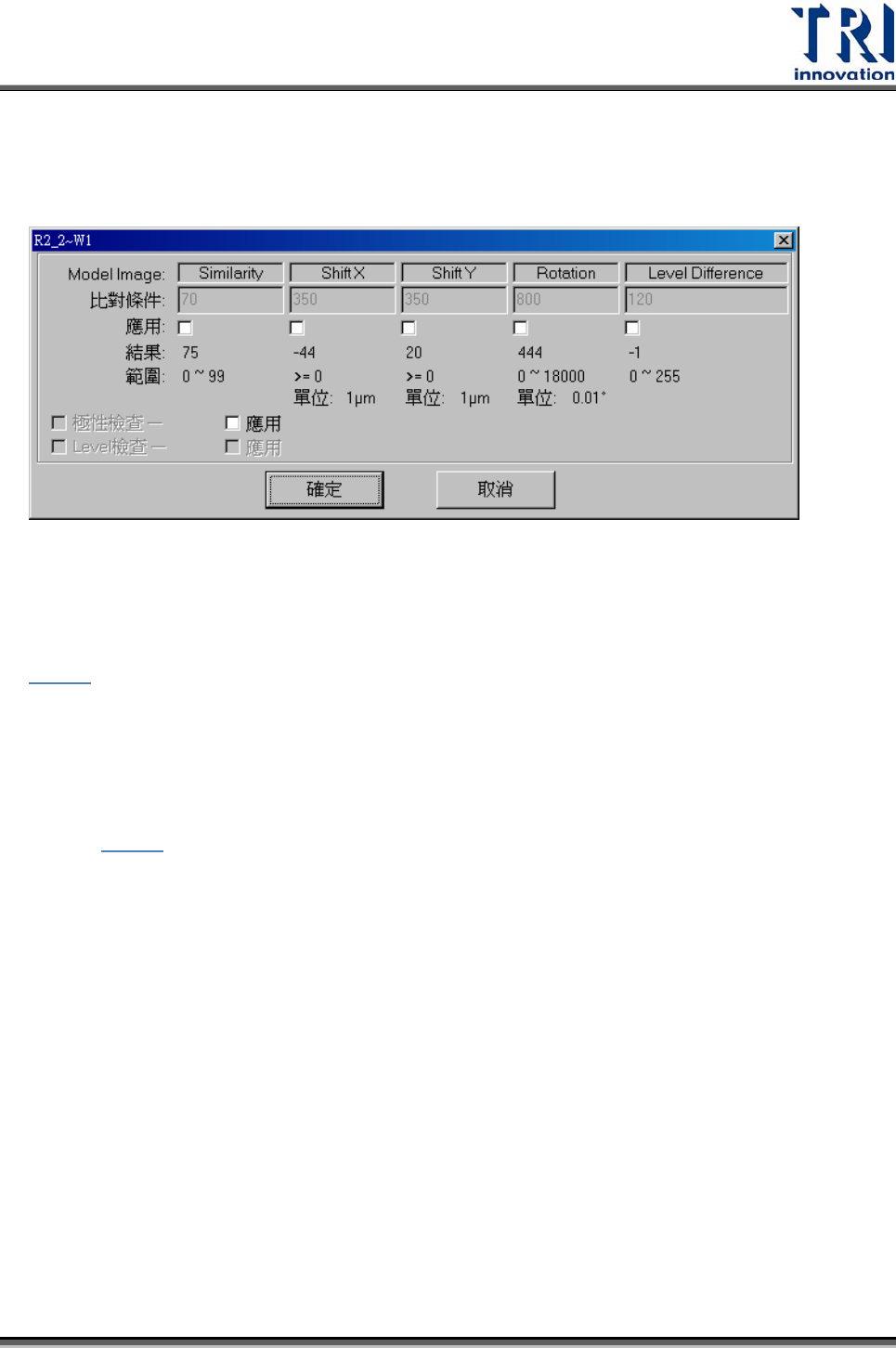 按此按鈕會出現比對條件設定視窗,可在此設定元件的比對條件參數。