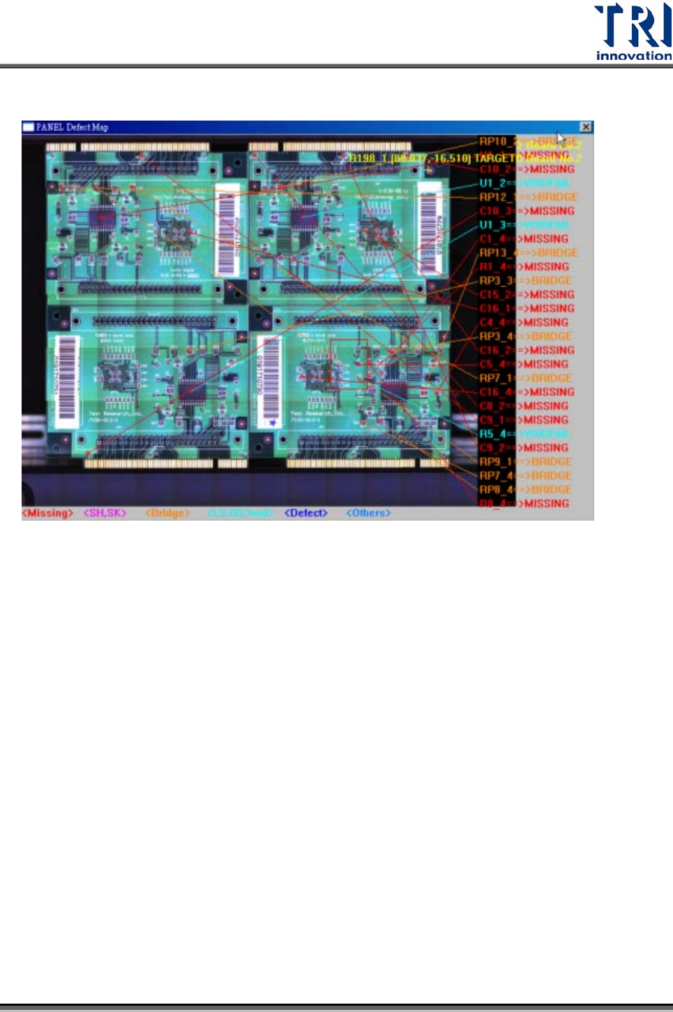 會將目前所在缺點位置標示出來,並列出其缺點項目。若使用者設定檢測模式為