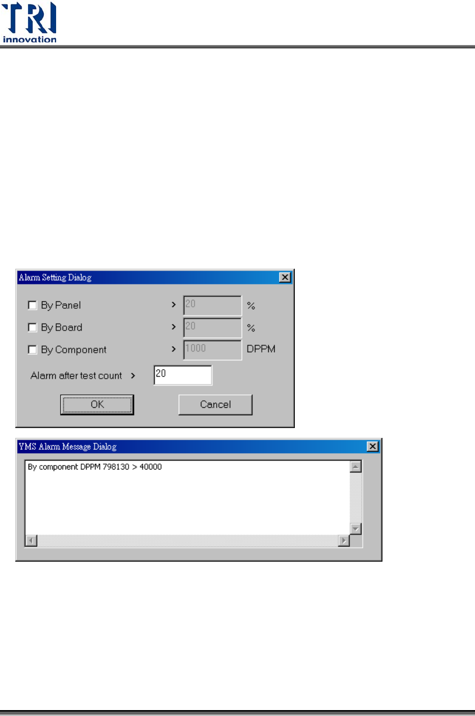 z 警告設定(Alarm Setting) – 可依[By Panel],[By Board],[By Component]的不良