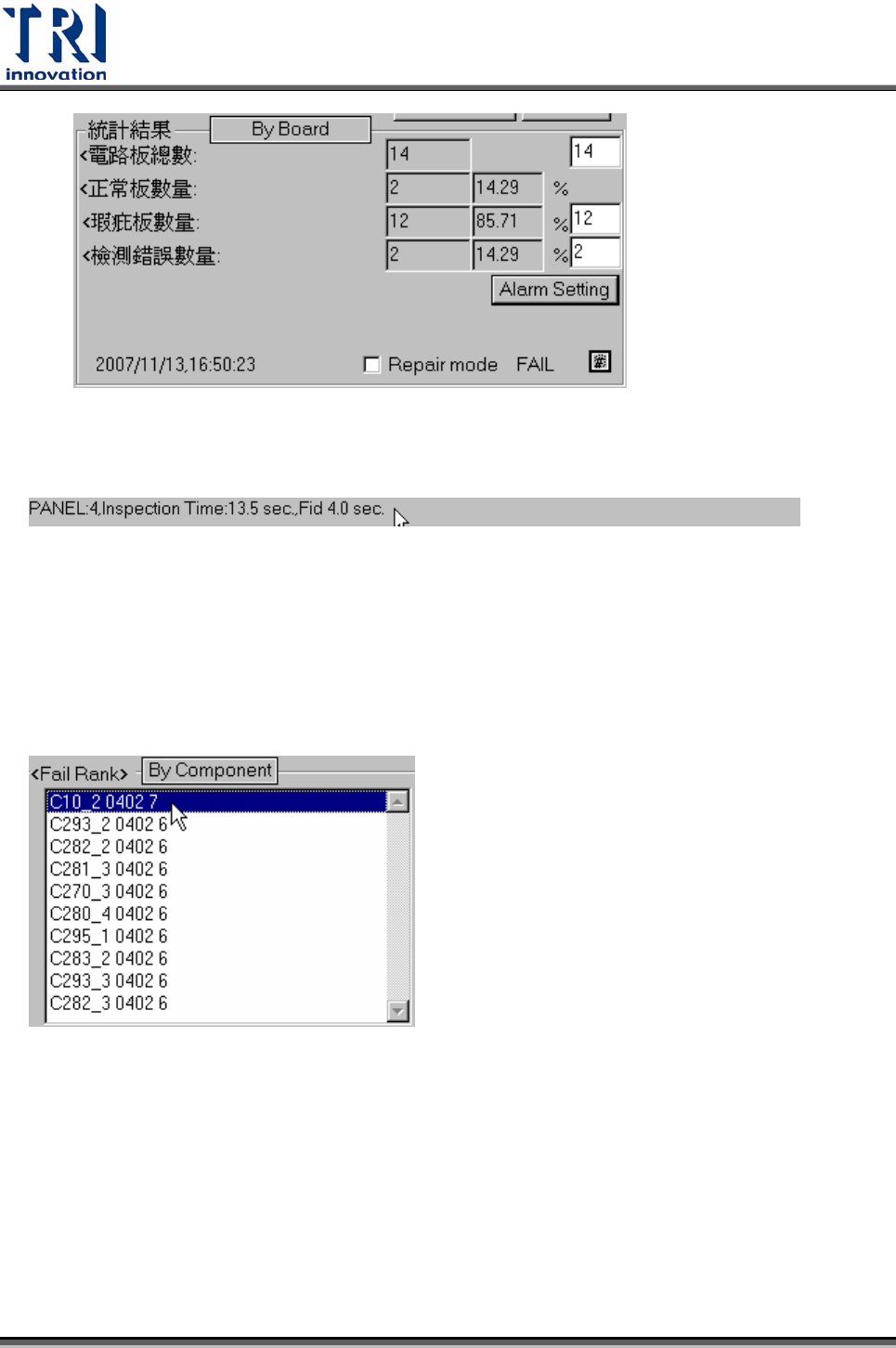 瑕疵板統計(Fail Statistic) –列出發生的瑕疵種類次數及百分比。
