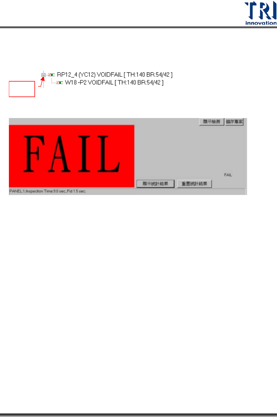 Test Research Inc. TR7500SeriesUserGuide – Software 499 樹狀圖瑕疵列表 – 列出瑕疵元件的詳細錯誤內容。 元件名稱 ( 類型 ) 瑕疵 種類 [ 瑕疵 參數 檢測 分數 / 檢 測參數 ] 展開 檢測框名 稱 瑕疵種 類 [ 瑕 疵參數 檢 測分數 / 檢測 參數 ] 不顯示統計結果 (Disable Yield Count) – 不顯示出統計結果欄位 重…