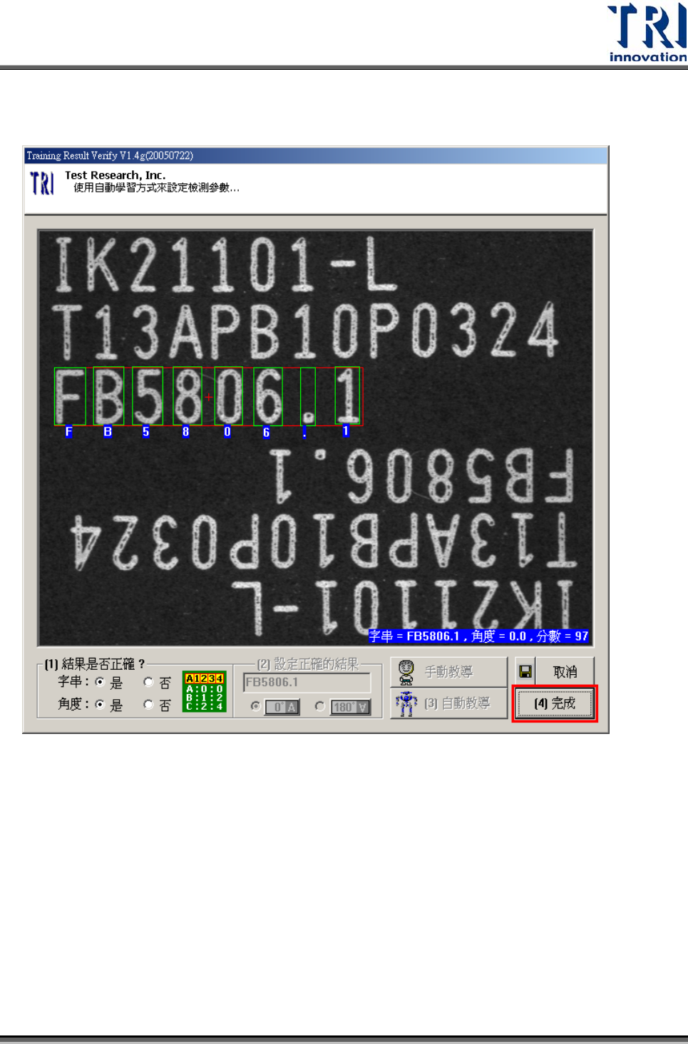 自動學習完成後,再次確認辨結果是否成功,如成功則按下[OK]按鈕以完成[OCR