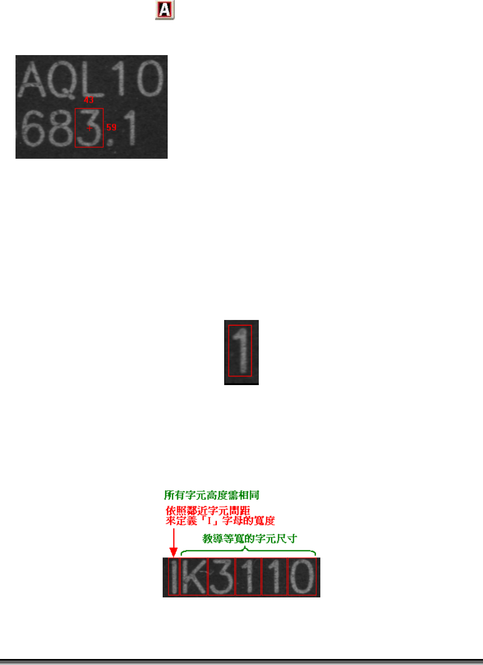 「1」影像左右兩邊可盡量預留空間(3 Pixels 左右)以增加鑑別性。