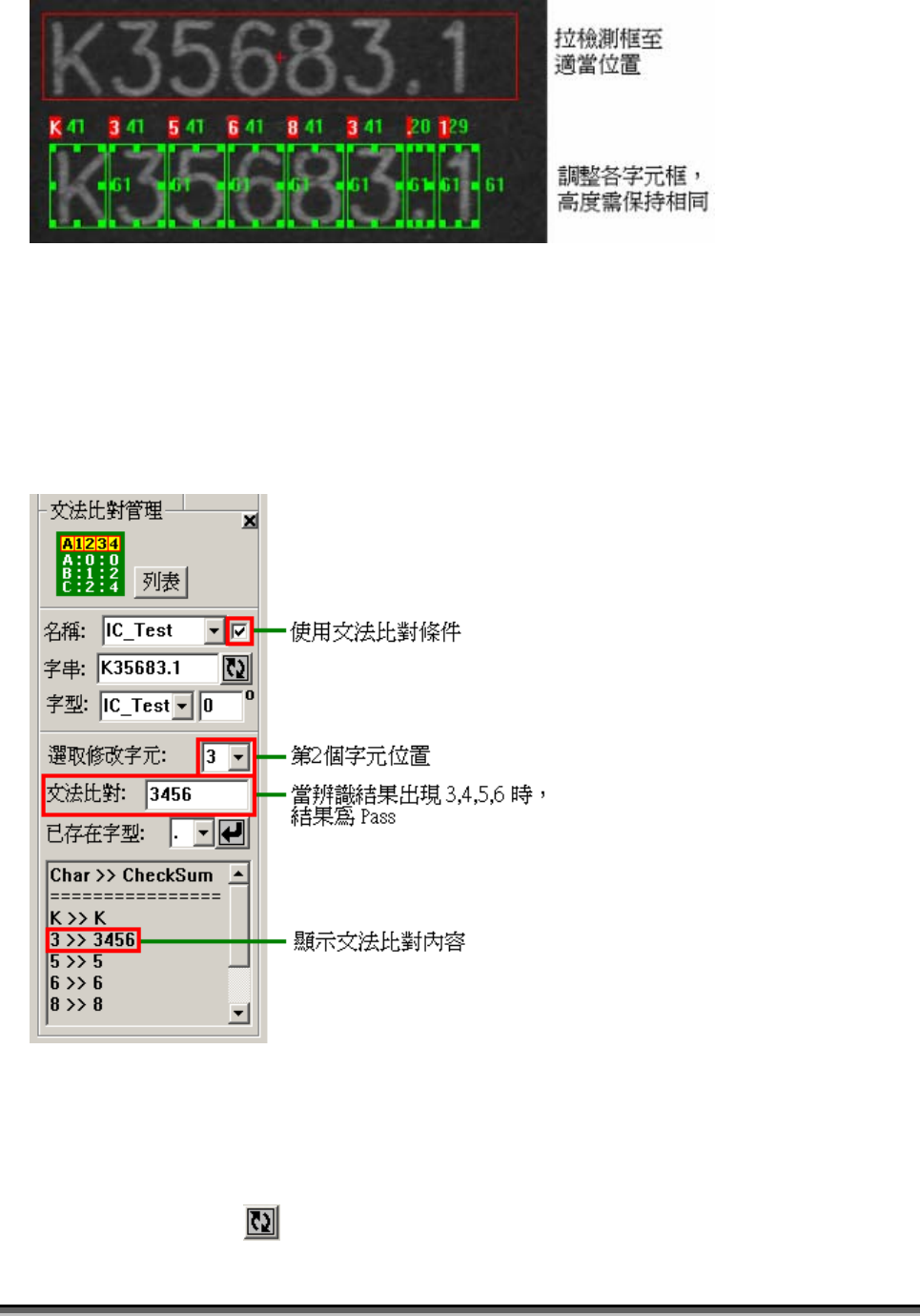 當Train完後,系統會定義每個字元的CheckSum比對條件,內定為所屬的字元內容,