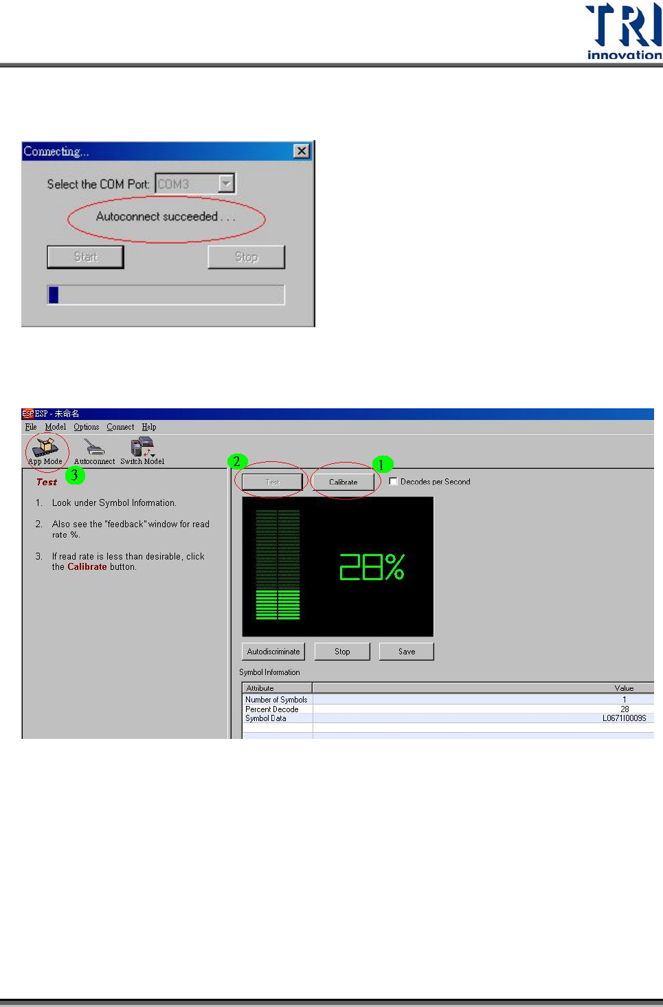 z 使用者可以利用[Test]按鈕來確認目前條碼的辨識率