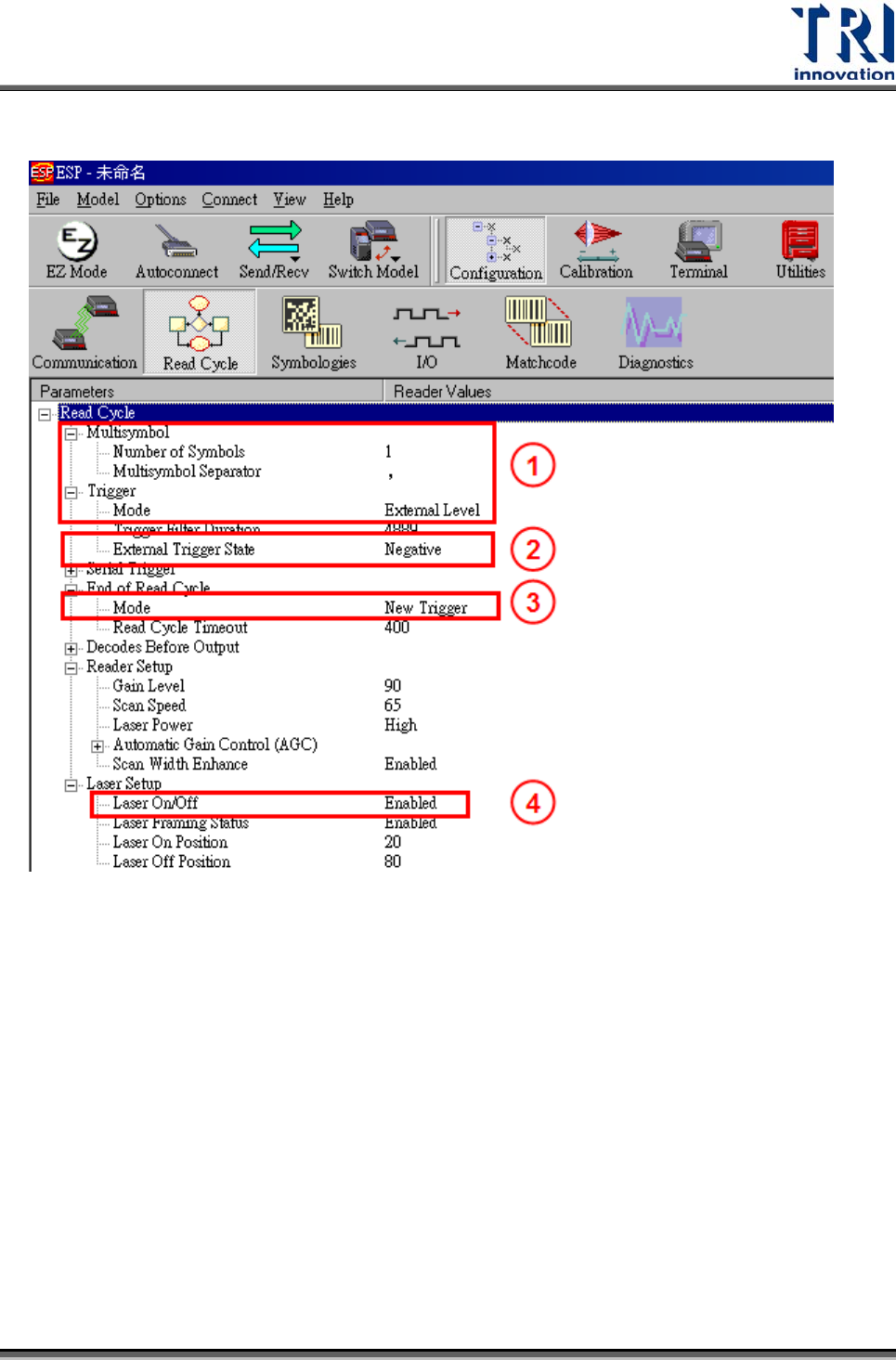[Trigger Off]的訊號,才會停止讀取條碼,並將雷射光關閉。