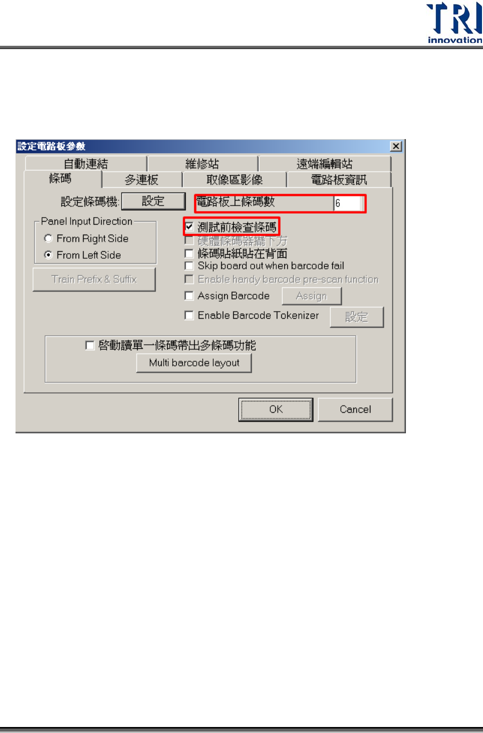 A. 檢查條碼器設定是否為被偵測到,以及參數設定是否正確(按下[Setting]鈕)。
