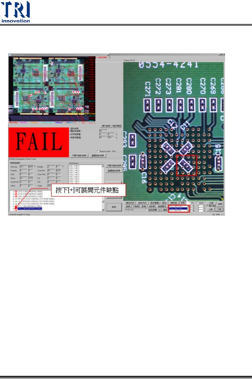 4) 在影像區或元件列表區點選缺點元件時,右方的缺點樹狀圖列表會自動將該元件