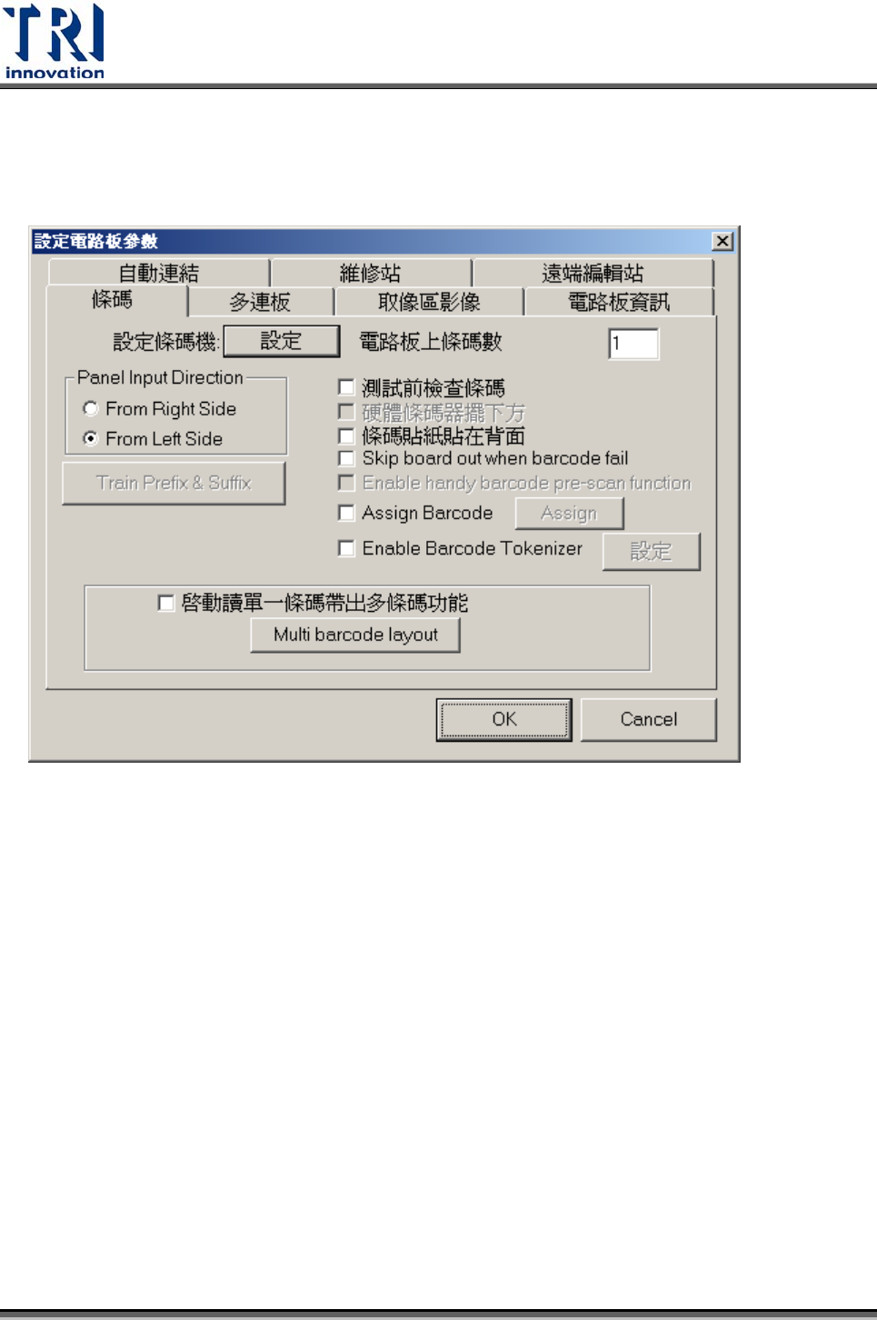 電路板上條碼數(Barcode count in one panel) – 輸入本片電路板上需讀取的條碼總