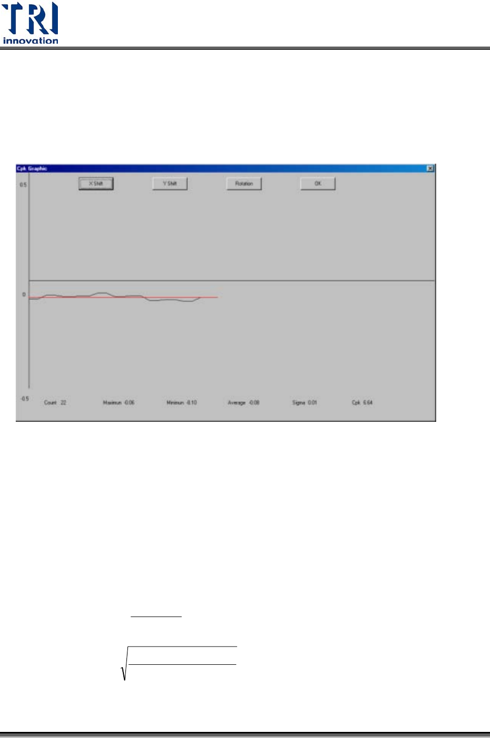 Test Research Inc. TR7500SeriesUserGuide – Software 203 ⎭ ⎬ ⎫ ⎩ ⎨ ⎧ − − = Sigma LSL Average Sigma Average USL Min Cpk 3 ) ( , 3 ) ( USL 以及 LSL 分別為規格上下限,可在檢測模式啟動時輸入 3.7.11 量測工具 (G AUGE T OOL ) 3.7.11.1 量測 Fiduc…