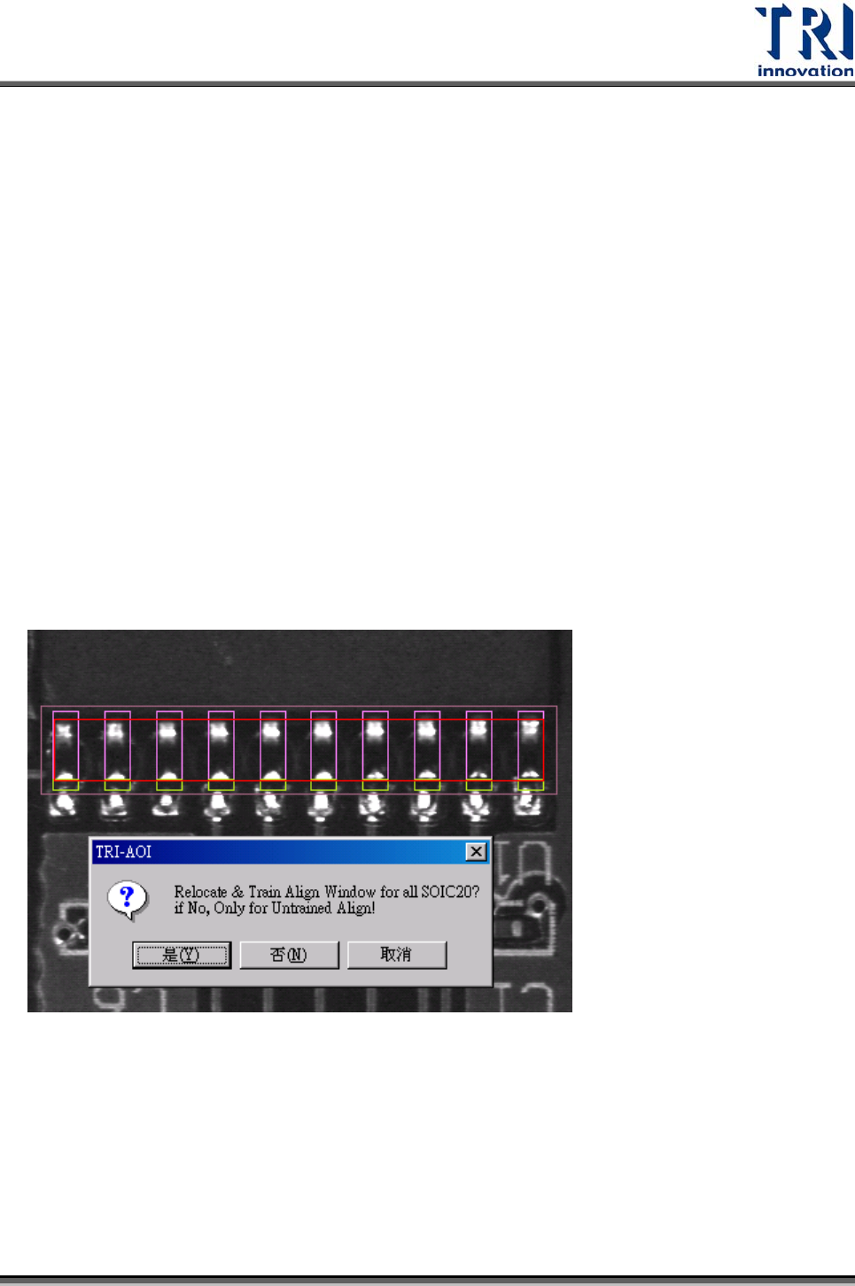 框會被設定為[Untrain],使用者需再自行加入標準影像。假設該元件的檢測框超出