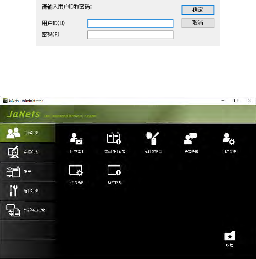 JaNets 平台启动后,即显示登录画面。请输入用户 ID 及密码。