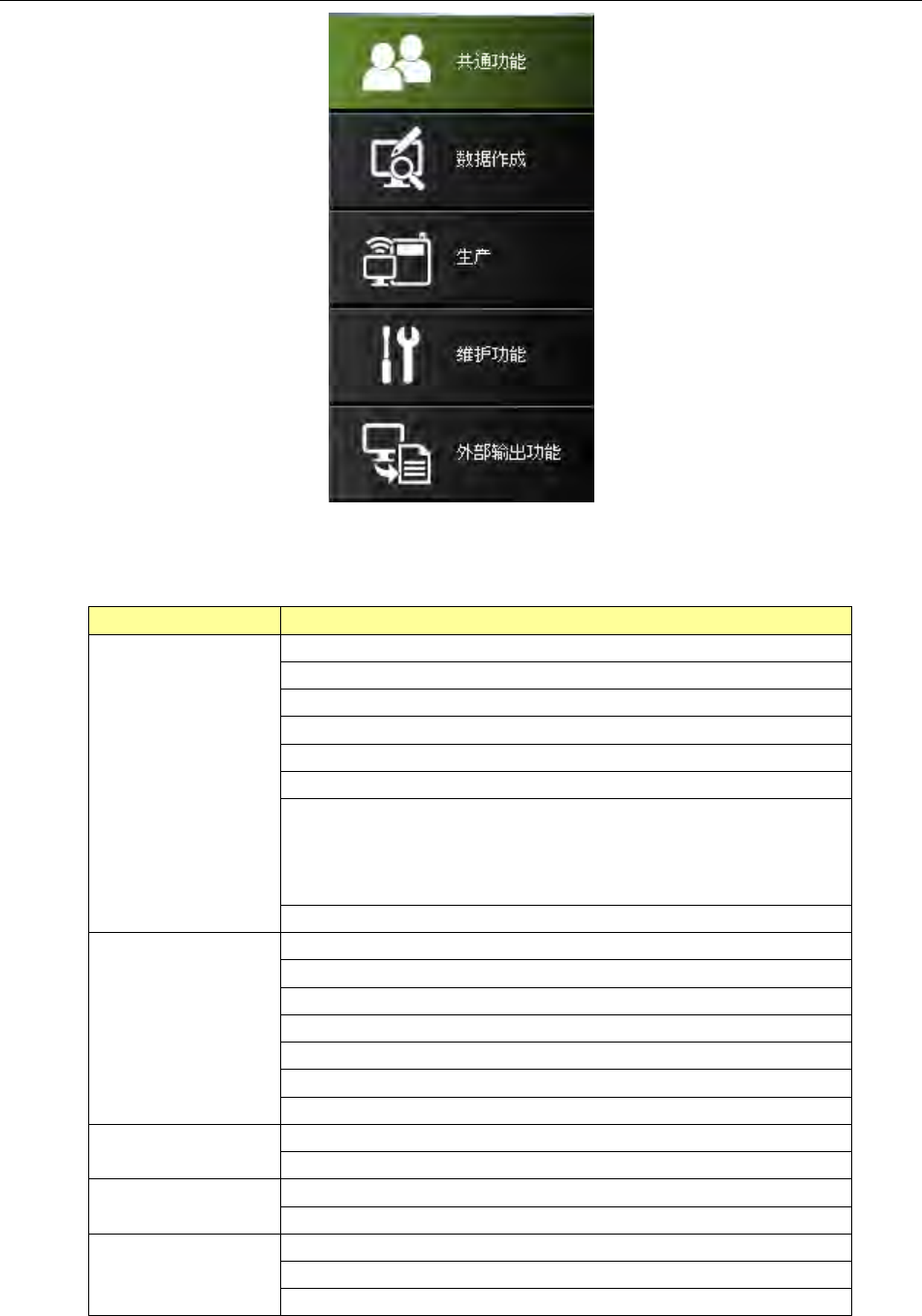 JaNets 使用说明书 3 平台 3-5 3-2 选项卡 项目 图 3-2-1 选项卡项目 表 3-2-1 选项卡项目的说明 选项卡项目 各项选项卡项目的功能 共通功能 用户管理 用户变更 车间作业设置 版本信息 环境设置 语言转换 元件数据库 (※需要 DataManager , 并在环境设置中 设为使用服务器 ) 或者 (※ 安装 Compone ntDatab ase ,在环境设置中设为 未使 用服务器) T raceMon i…
