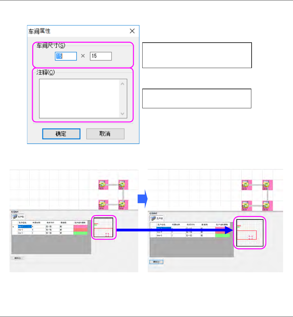 图 5-2-21 车间属性的车间尺寸变更前图 5-2-22 车间属性的车间尺寸变更后