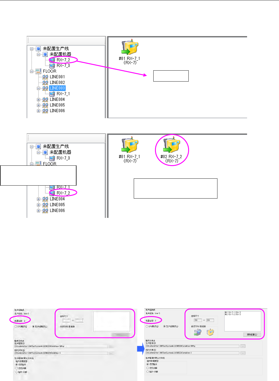 图 5-3-11 生产线图内的机器-拖动时 图 5-3-12 释放到移动目标机器的位置后