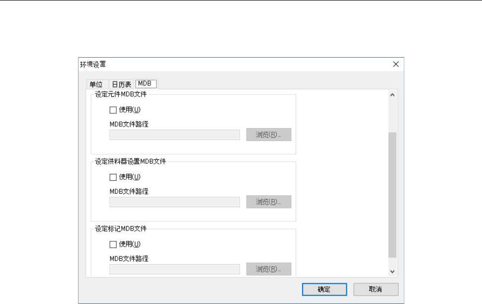 设置元件 MDB 的使用/不使用,以及使用 MDB 文件的路径。