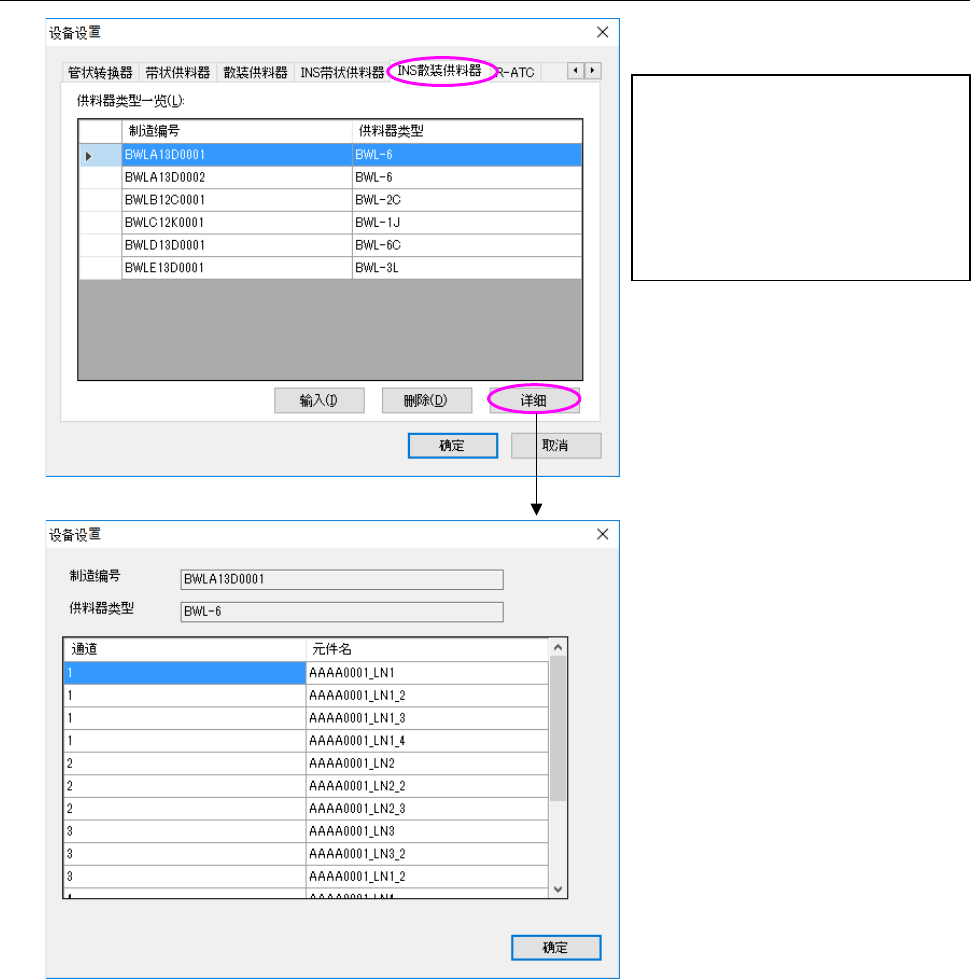 图 5-6-11 设备设置画面(INS 散装供料器)