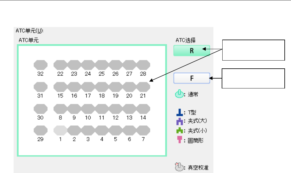 ※机器初始显示时的设置,会优先选择显示前侧最左侧的 ATC 单元。