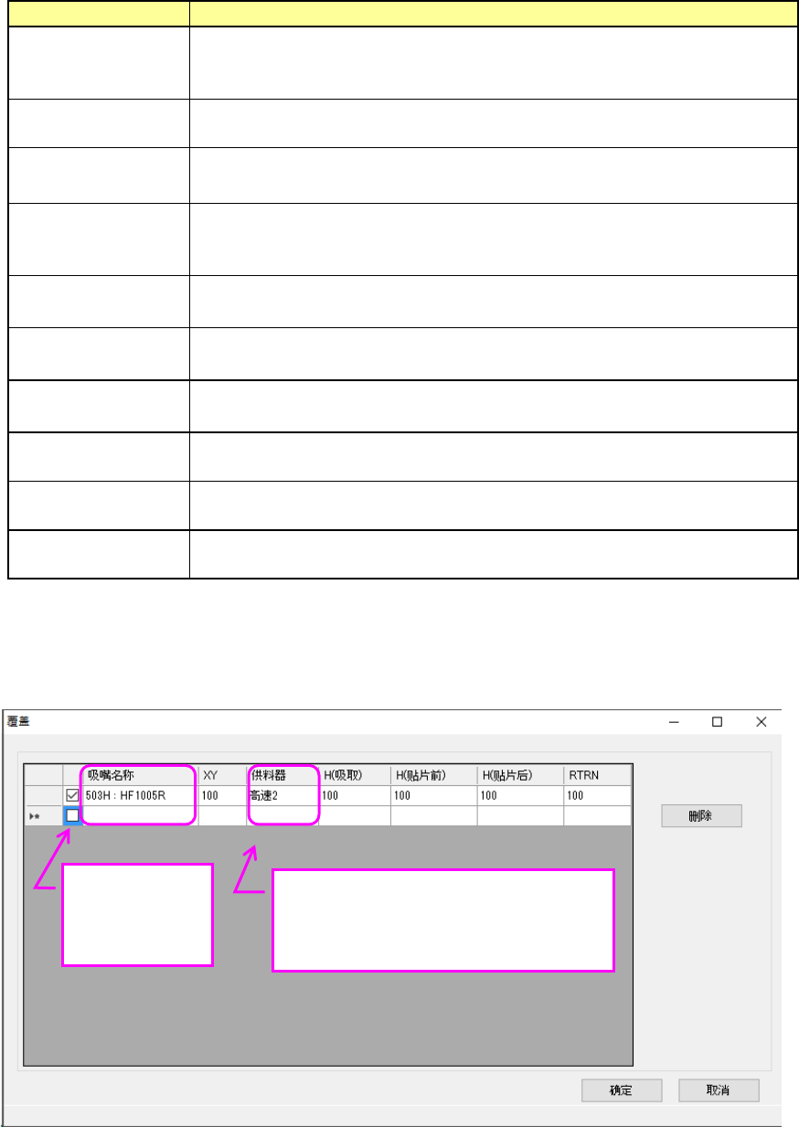 对该元件可以使用的吸嘴编号和覆盖内容进行编辑、追加、删除。