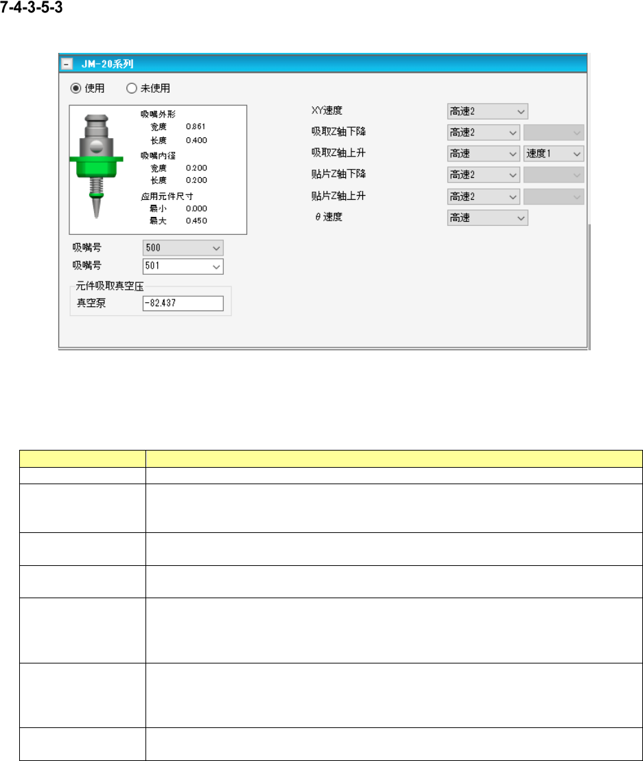吸嘴编号 从组合框的下拉列表中选择吸取时的吸嘴编号。