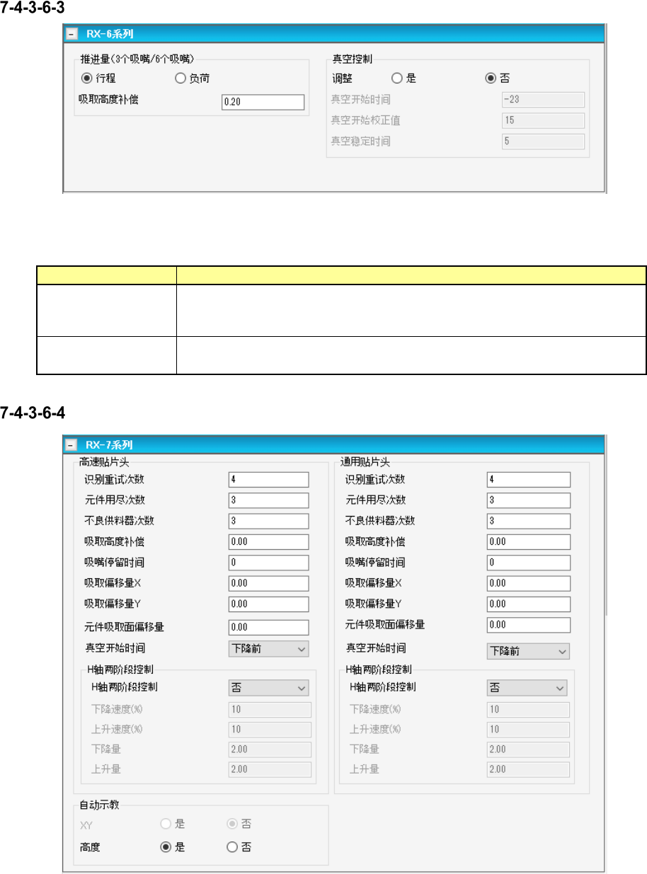 表 7-22 吸取条件(RX-7 系列 贴片头共通)画面项目
