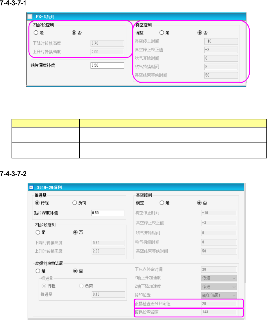 表 7-31 贴片条件(FX-3 系列)画面项目