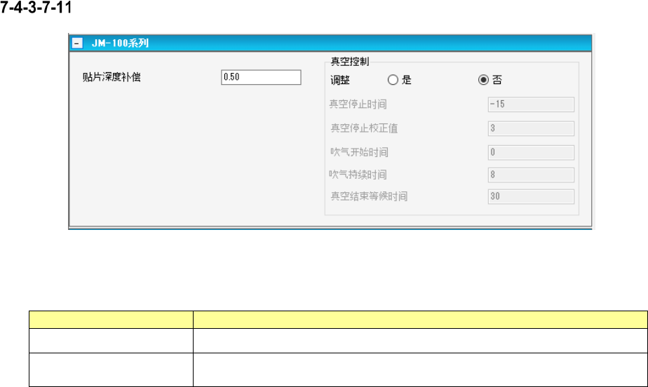 表 7-42 贴片条件(JM-100 系列)画面项目