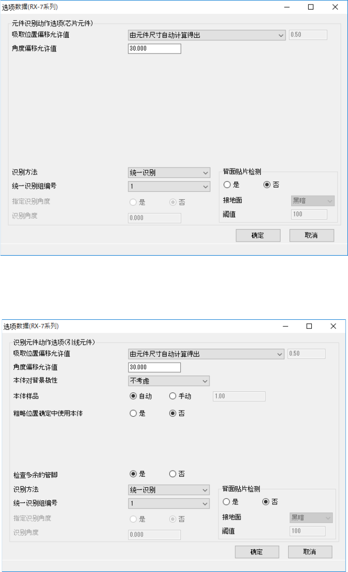 JaNets 使用说明书 7 编辑程序 7- 85 ◆芯片元件 图 7- 130 RX -7 系列 选项数据画面 ( 芯片元 件 ) ◆引线元件 图 7- 131 RX -7 系列 选项数据画面 ( 引脚 元件)