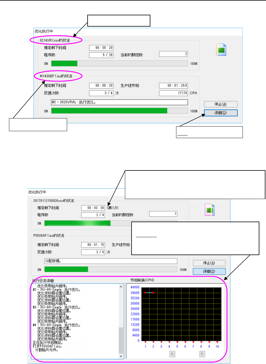 图 8-3-81 作业优化/编辑程序中的优化执行状态显示对话框(显示详细)