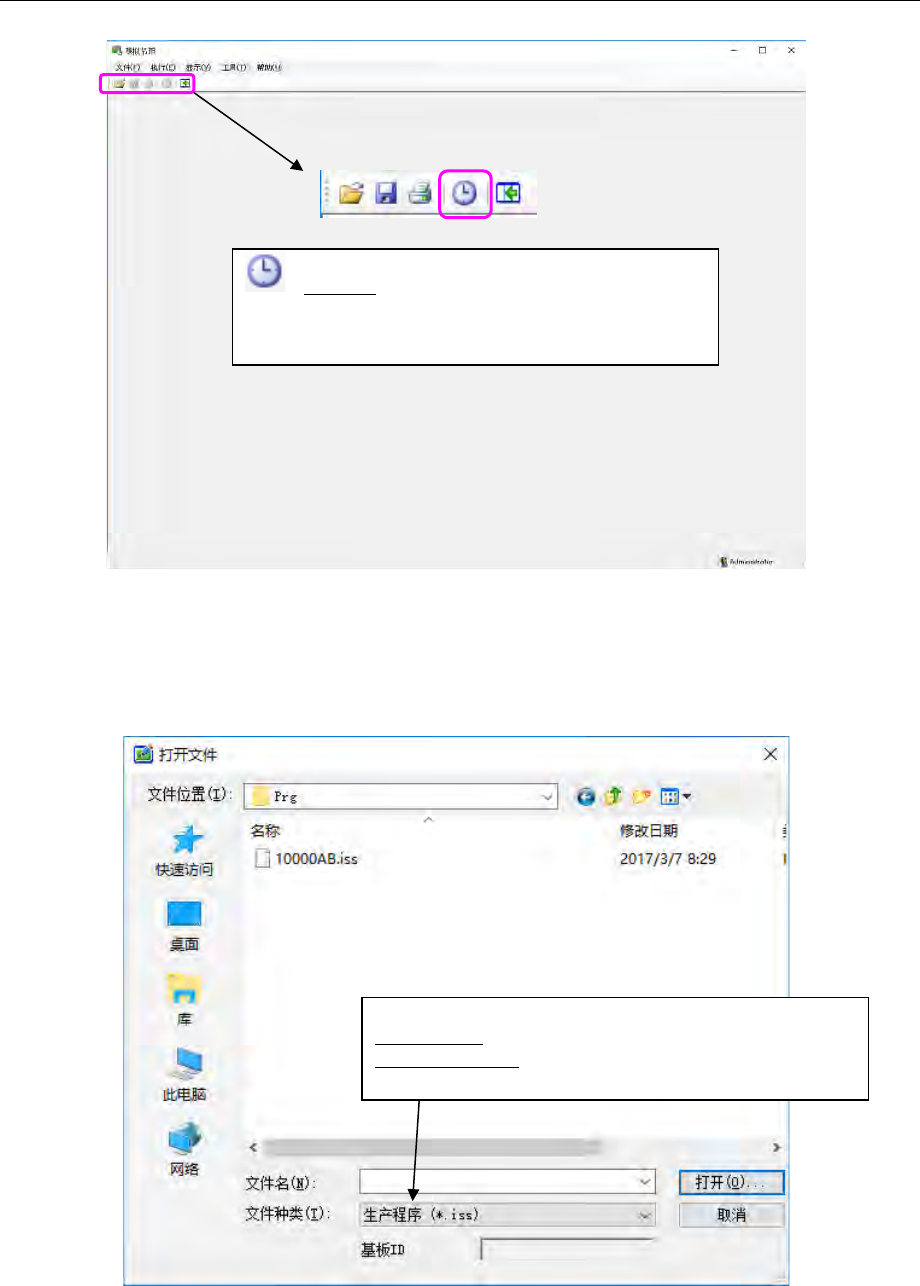 打开 显示「打开文件」对话框(生产程序/记录结果文件)