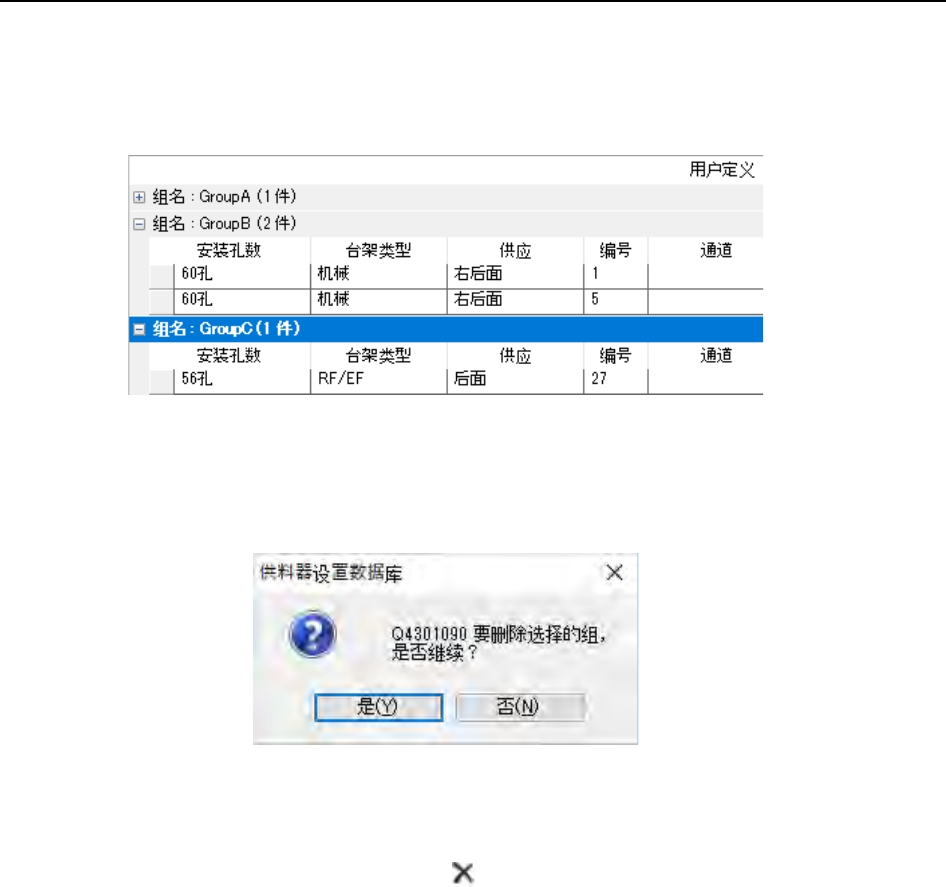 从数据库里删除管理的供料器组。