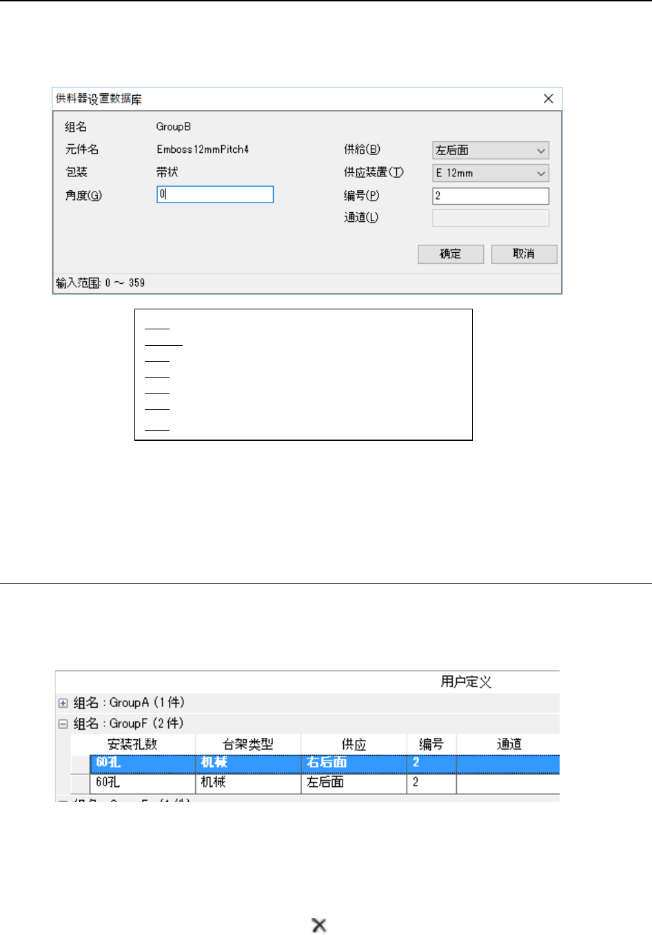 追加(A):将设置的供料器设置数据追加到供料器组里。(※2)